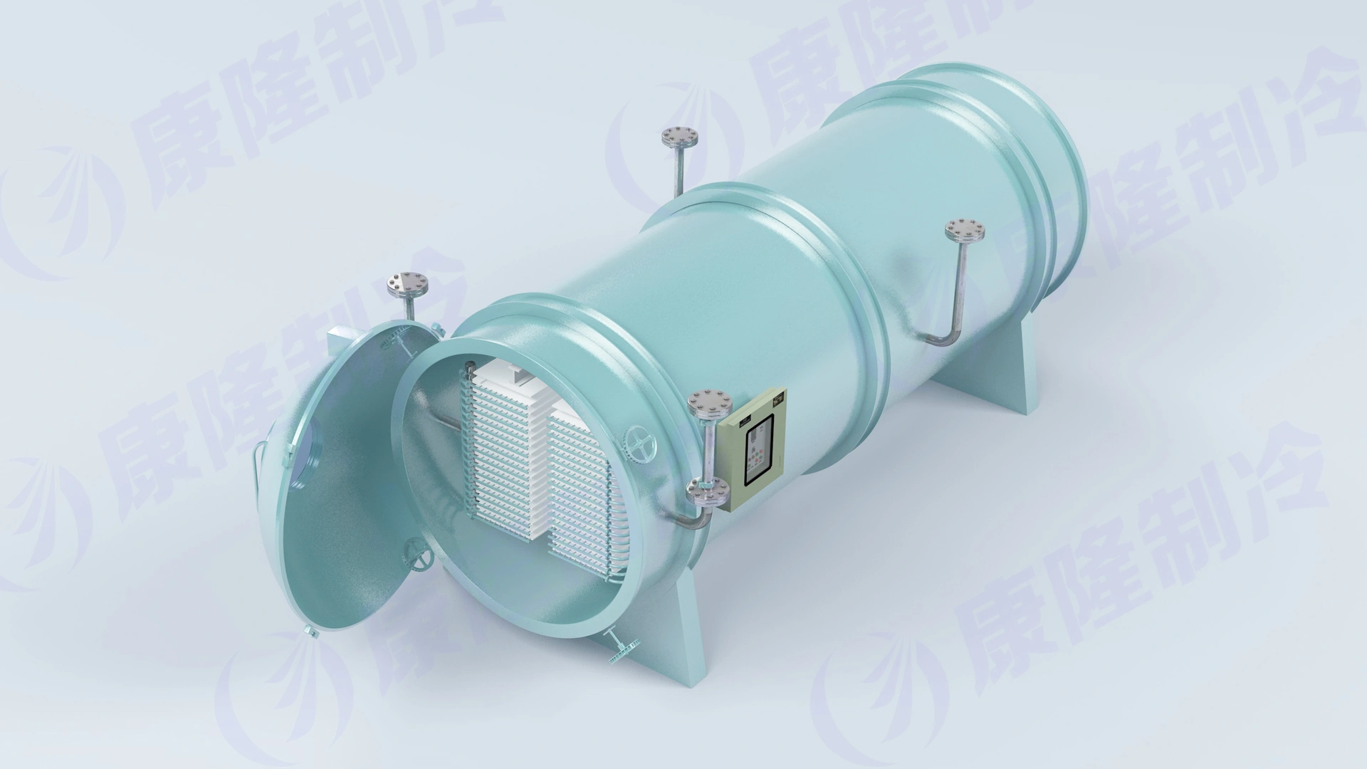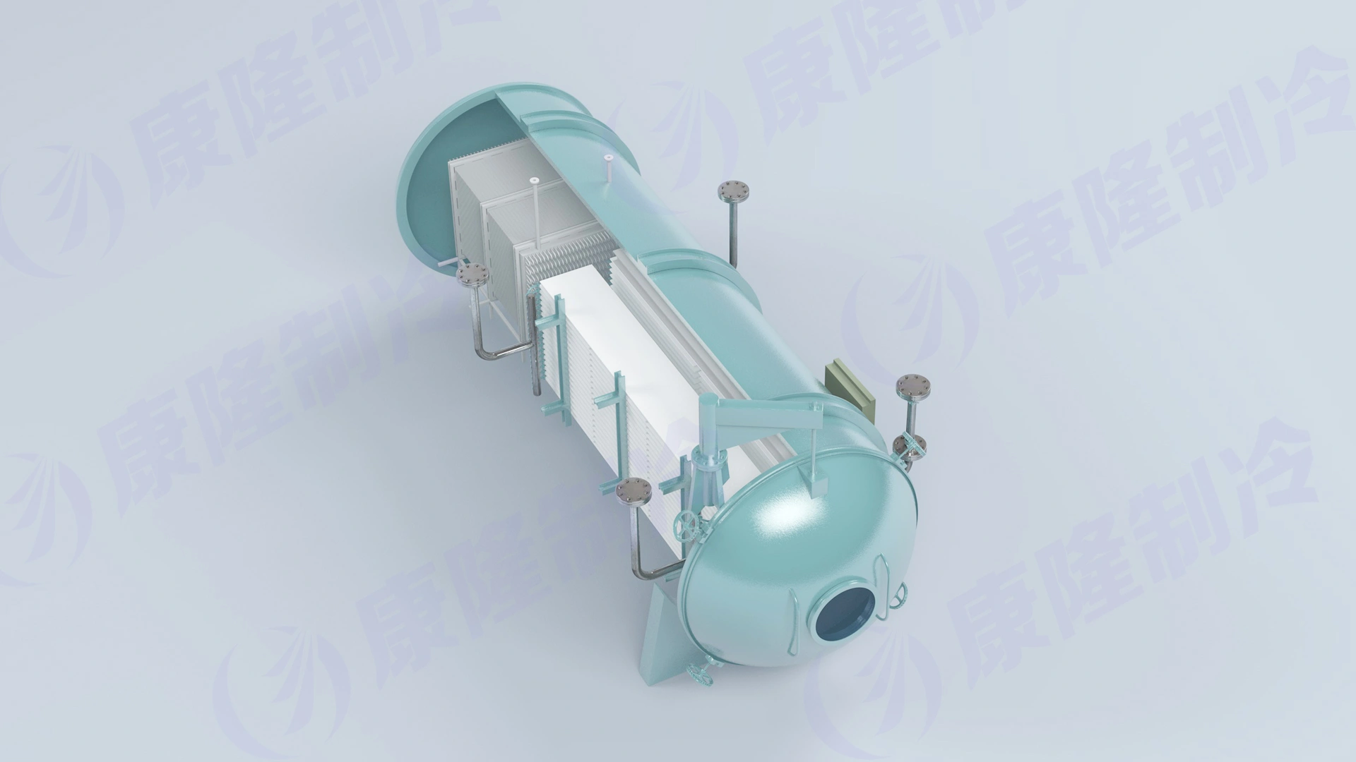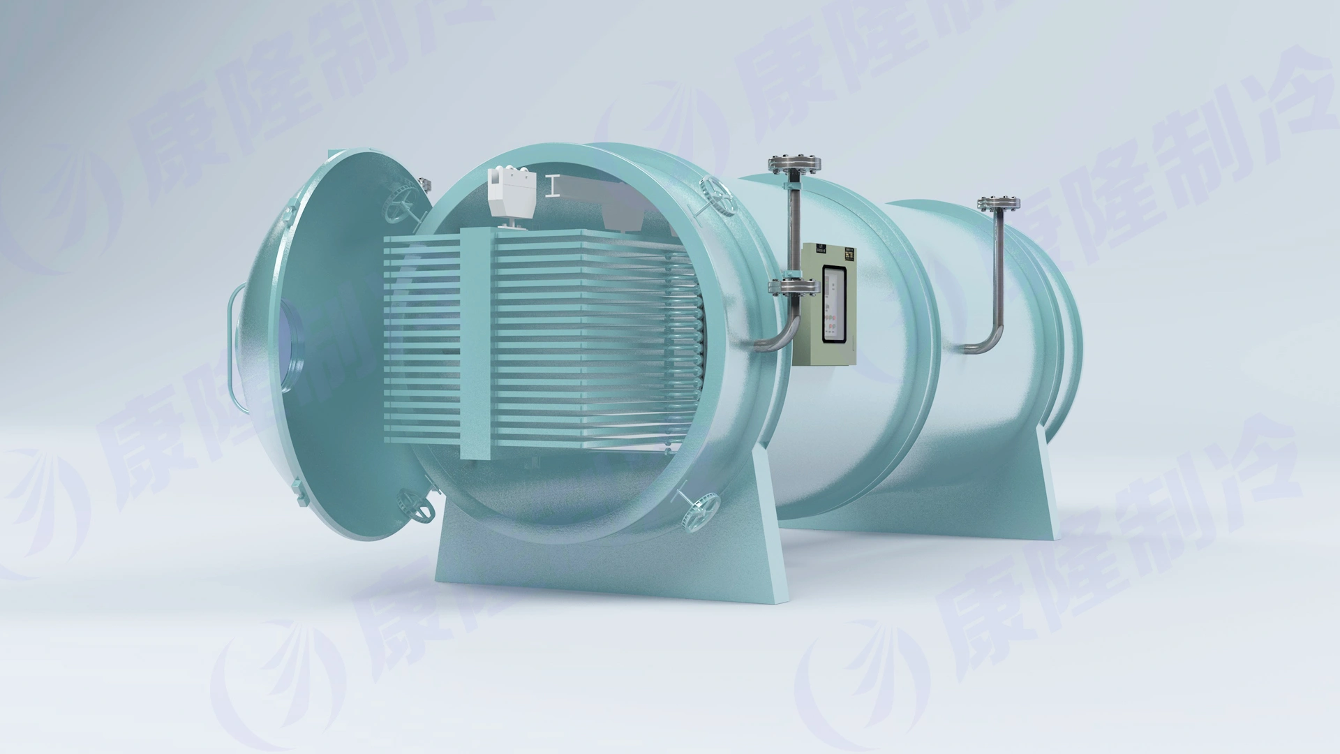 The KFD series vacuum freeze dryer consists of multiple subsystems, including a material quick-freezing system, a vacuum tank system, a heating system, a vacuum system, a refrigeration system, a material conveying system, an electronic control system, a pneumatic system, and a disinfection system. The overall system features an optimized design that is rational, economical, and advanced, offering high efficiency, automation, energy saving, simple operation, and easy maintenance.