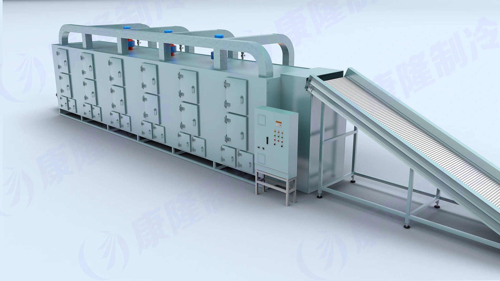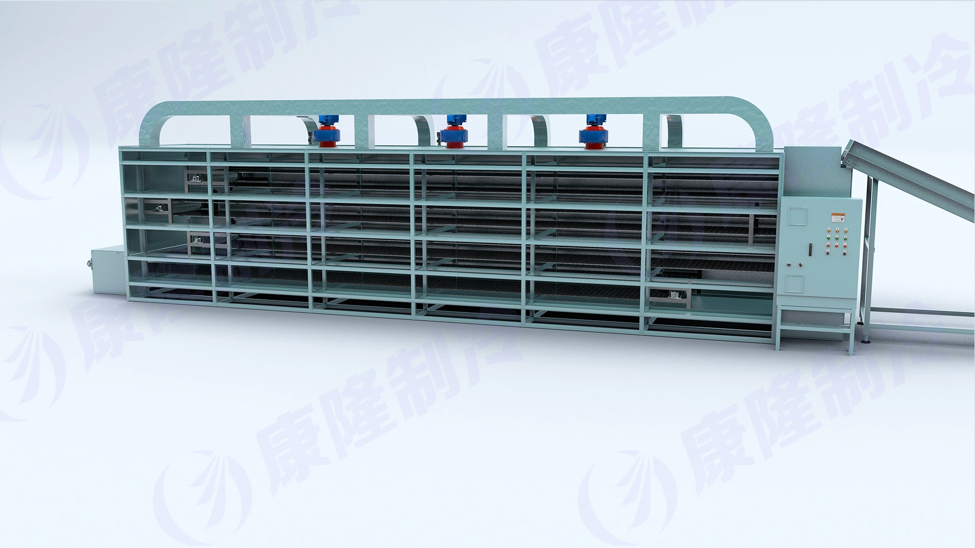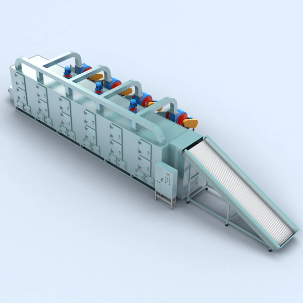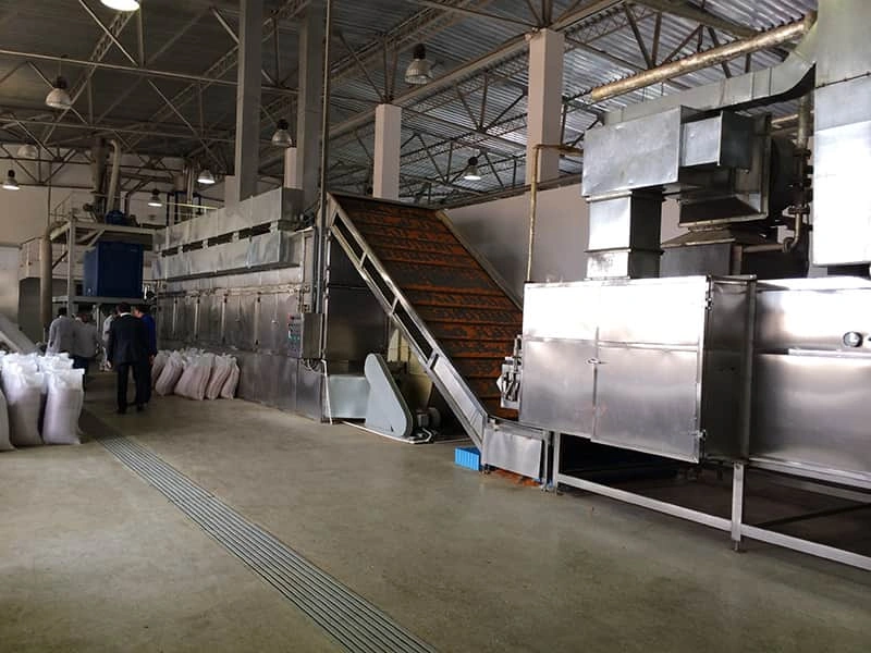 Automatic belt dryers are widely used in the processing of a wide range of industrial products, including snacks, granola, dehydrated fruits and vegetables, synthetic rubber, polymers, chemicals, and more. They are particularly suitable for drying well-ventilated flakes, strips, and granular materials. Even pasty materials such as filter cakes can be dried using a granulator or extruder mechanism. Belt dryers can be used as ovens, roasters, toasters, or coolers for a variety of applications. The product moves along a conveyor bed, passing through multiple temperature zones, where the air transfers heat and removes moisture. The addition of a rotary feeder allows the material to be spread evenly and ensures uniform drying because it will not flip or drip during the drying process. Automatic agitators and scrapers smoothly feed the material to subsequent processes.