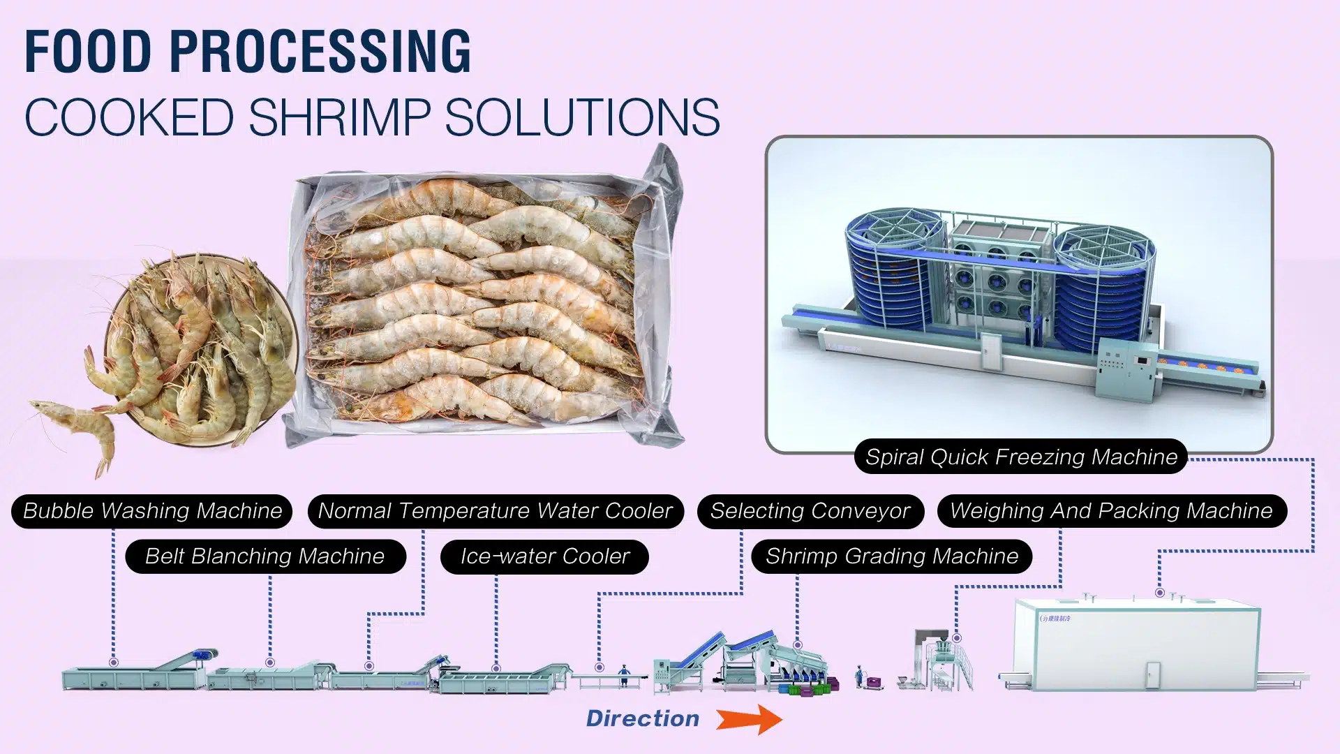 Shrimp is a popular delicacy around the world, enjoyed in both home kitchens and high-end restaurants. Combining years of production experience and industry expertise, KLONG can custom-design a shrimp quick-freezing production line to meet all your needs.