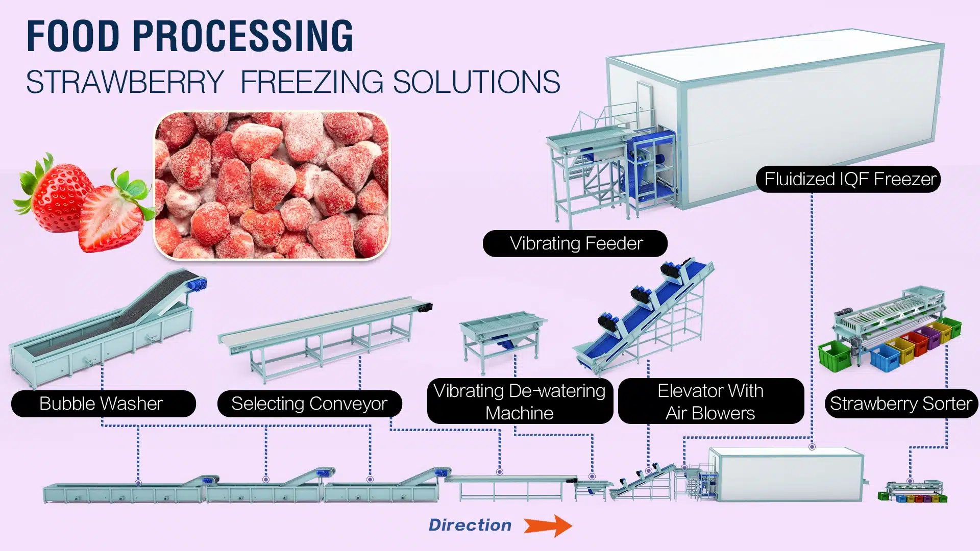 KLONG has years of production experience and expertise, and can customize and design a frozen strawberry processing line equipped with high-quality equipment to meet all your needs.